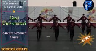 2019 Türkiye Üniversite Sporları Federasyonu Halk Oyunları Yarışması Klasman Ligi Grubu Artistik Dal Kategorisi Gazi Üniversitesi – Ankara Seymen Yöresi Teknik Puan: 26,33 Artistik Puan: 27,00 Toplam Puan: 26,73