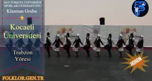 2019 Türkiye Üniversite Sporları Federasyonu Halk Oyunları Yarışması Klasman Ligi Grubu Artistik Dal Kategorisi Kocaeli Üniversitesi – Trabzon Yöresi Teknik Puan: 21,33 Artistik Puan: 21,67 Toplam Puan: 21,53